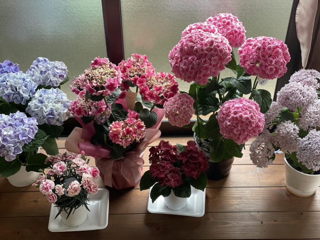 皆んなで競うように選んで贈った紫陽花が縁側に並んだ。