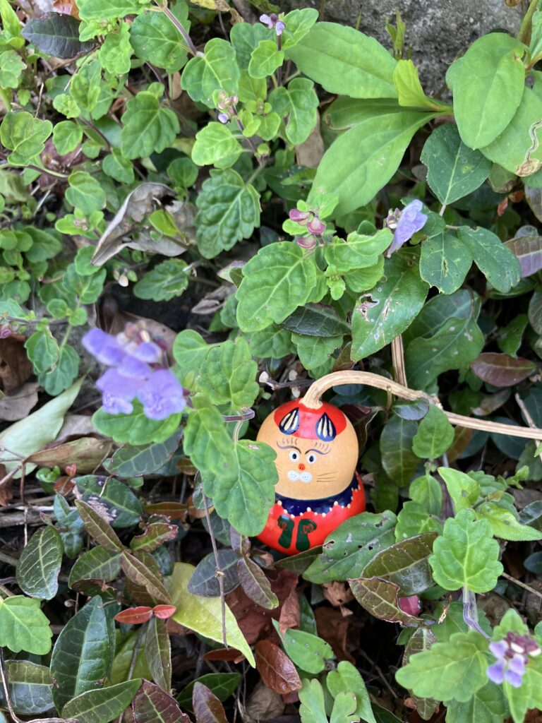 絵本民藝部部長がヨメナ ヨメナ…とキョロキョロしながら山道を行く。